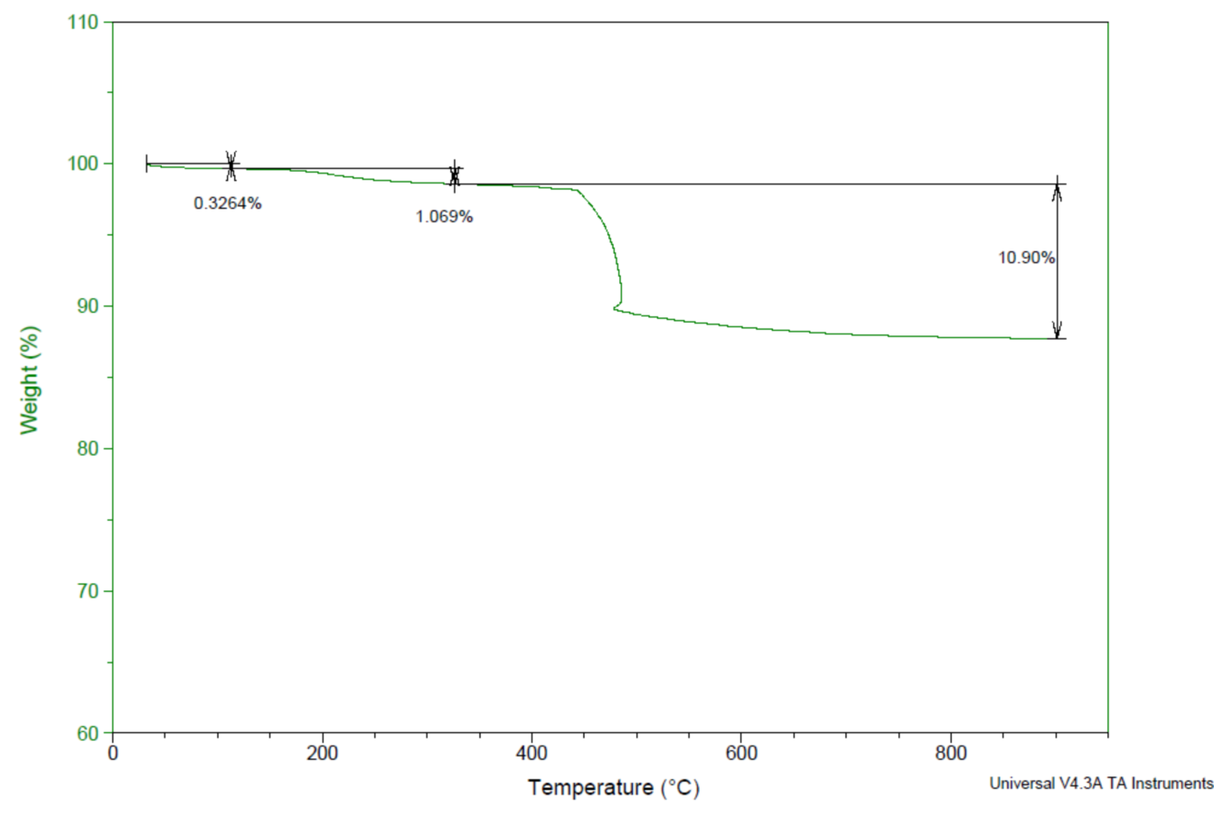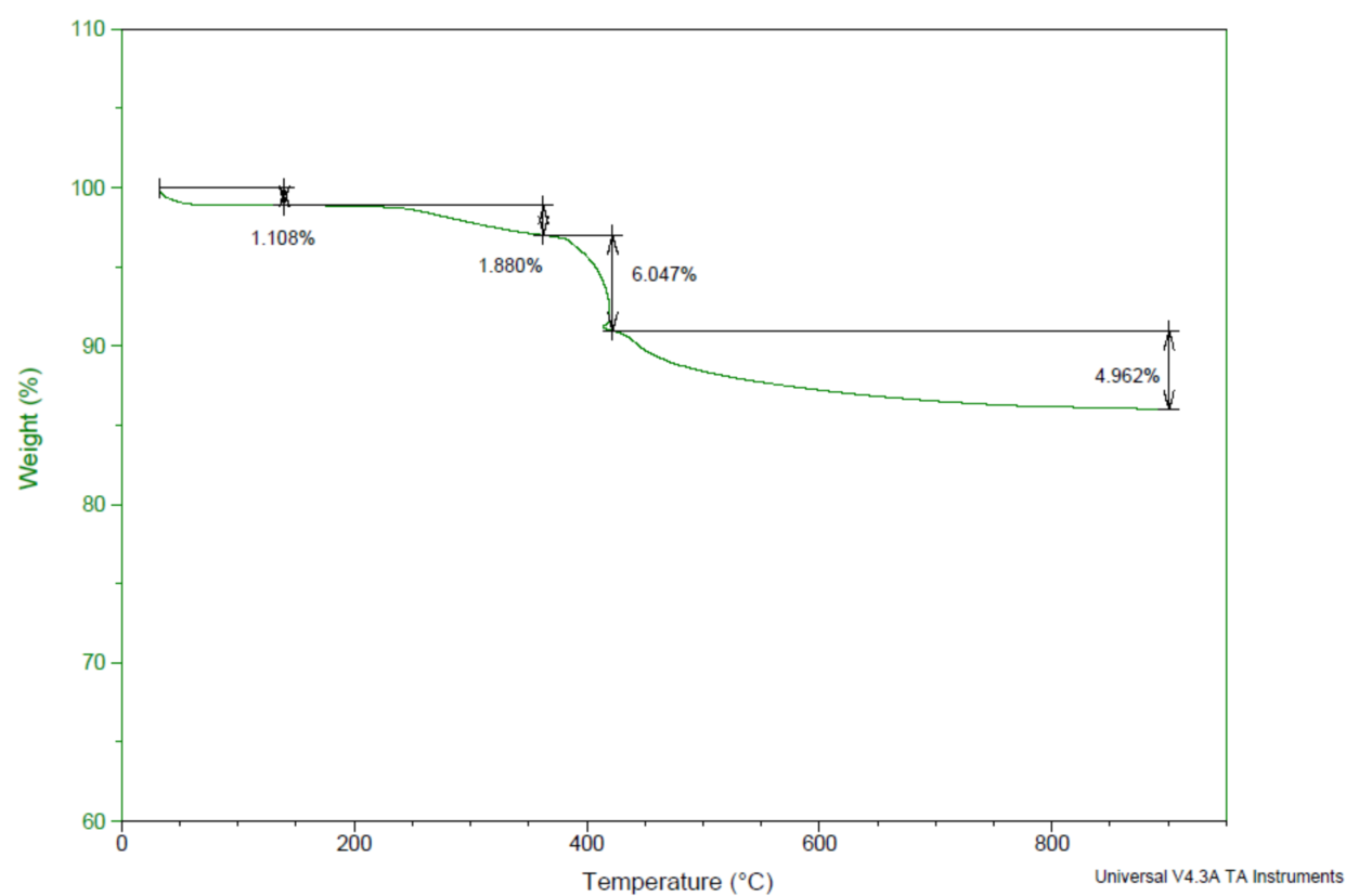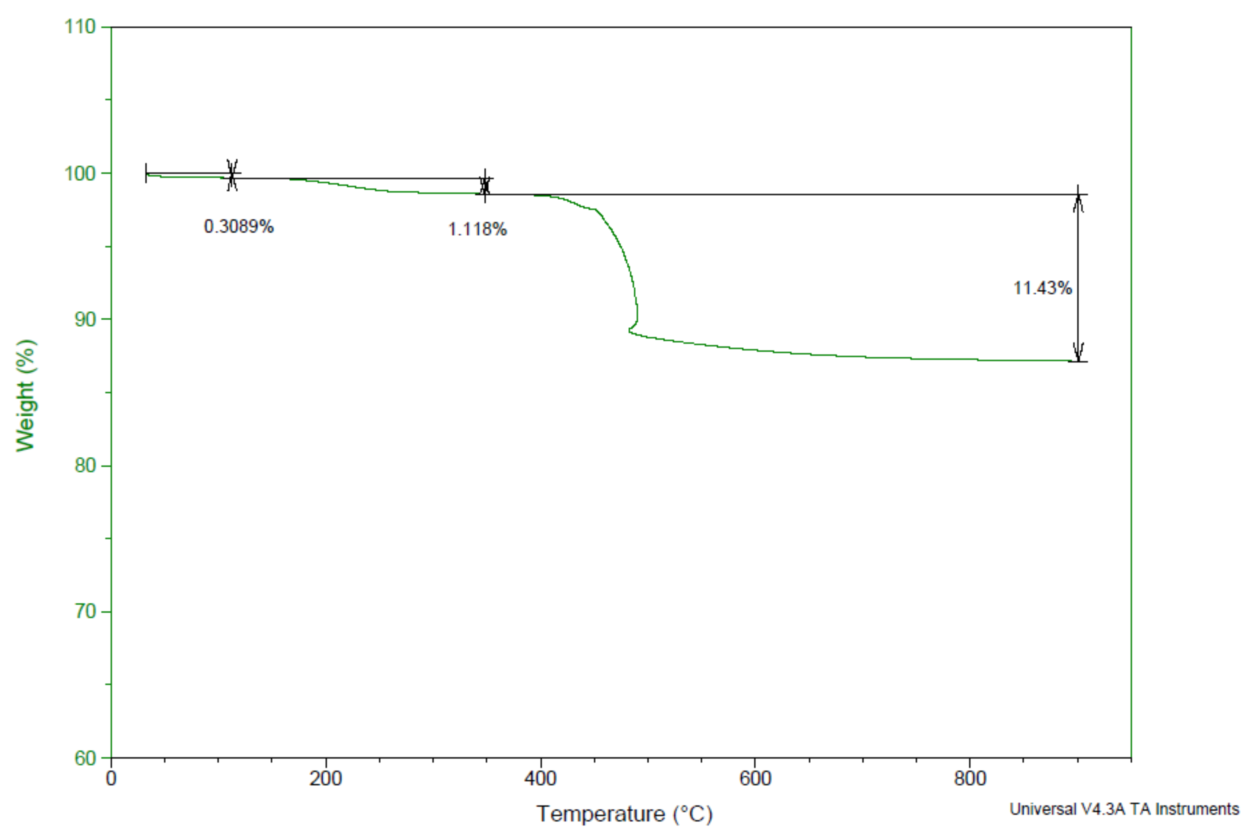 Result: Heating Rate: 10℃/min; Weight loss at 400℃: ≤3%; Weight loss at 900℃: ≤15%.